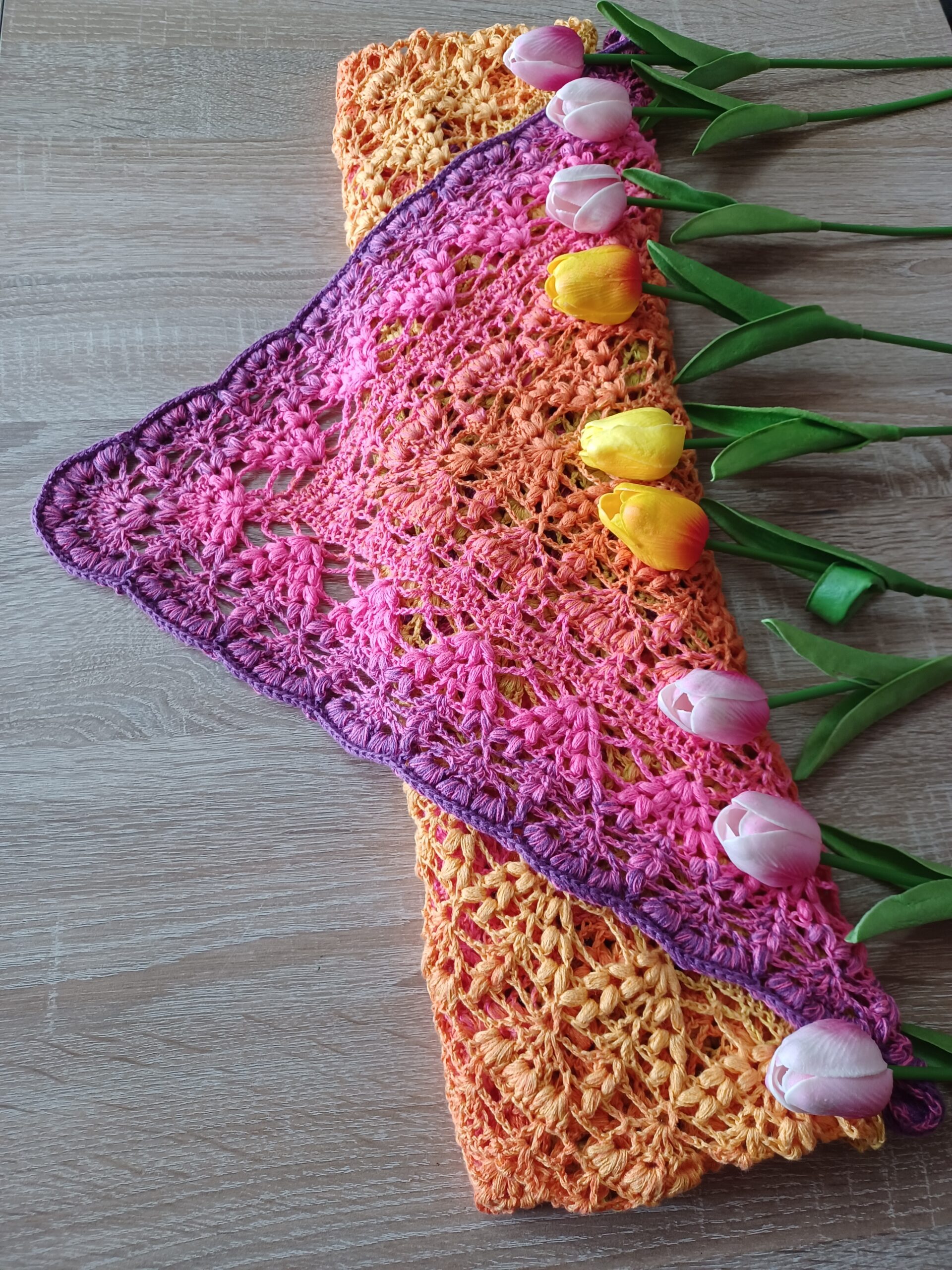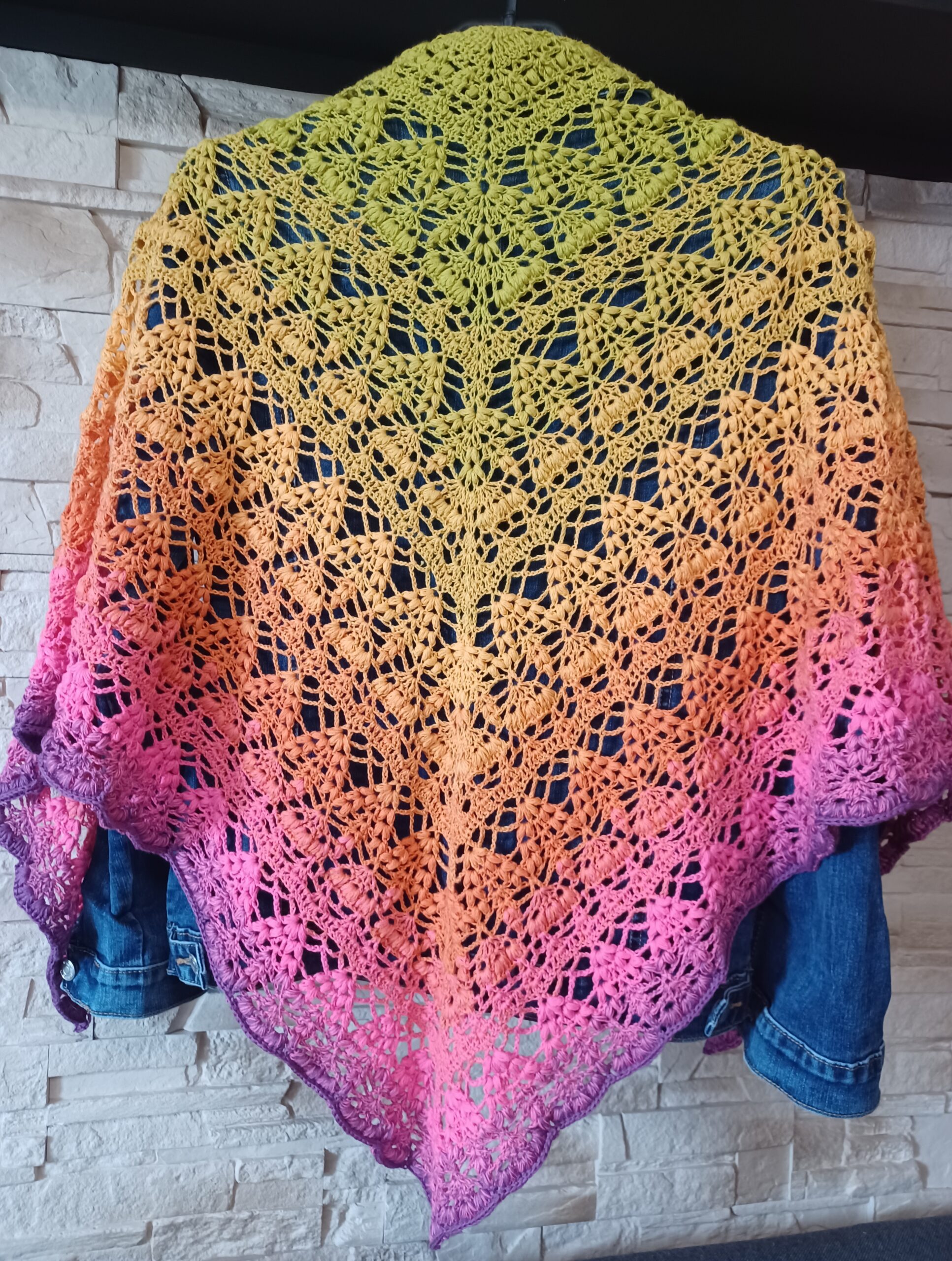 Wzóry na trójkątne i powtarzalne chusty Aruba, Mauke i Eze autorstwa Wyczarowane po godzinach i Szydełkowe Tworki zawiera:
