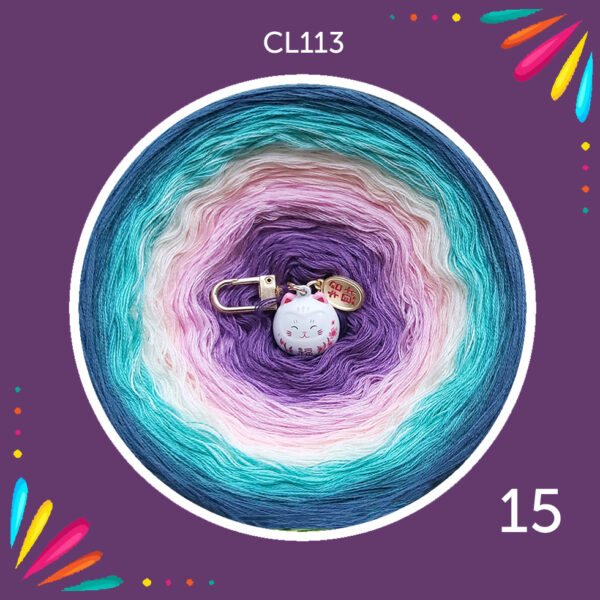 Motek ombre b/a 3 nitki, kolory od wewnątrz: bakłażan, jasna figa, jasna orchidea, wisteria, jasny lotos, jasna brzoskwinia, mochi, trawa cytrynowa, mięta, turkusowy, phuket, okinawa, średni petrol, głębia oceanu, petrol