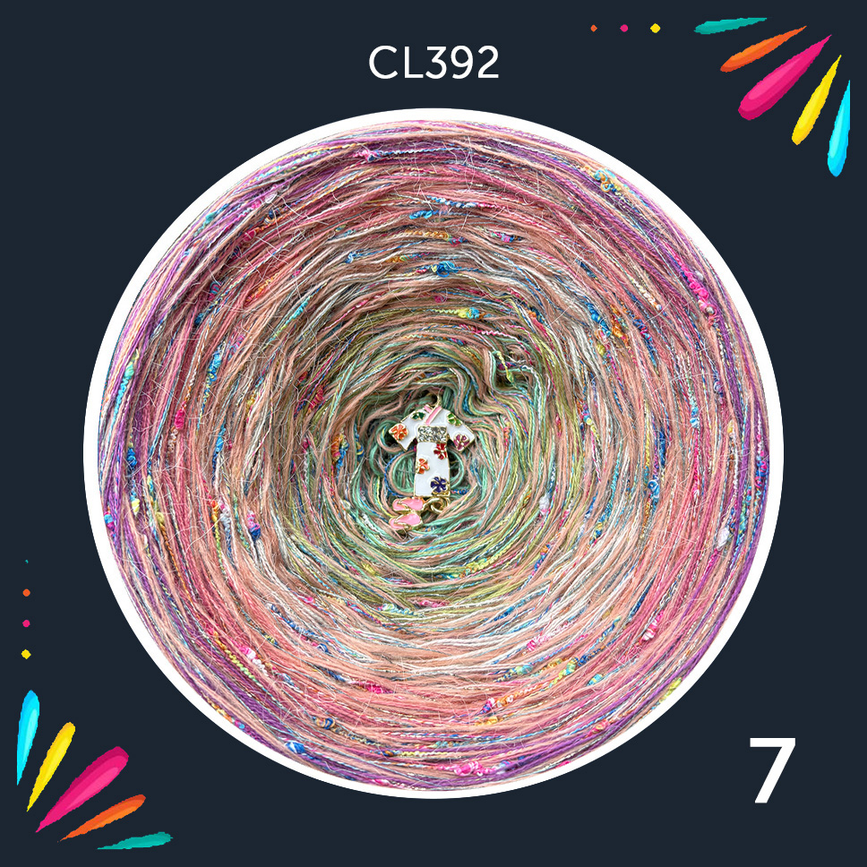7 kolorow bawełna/akryl, 2 nitki (trawa, pistacja, sezam, jasna brzoskwinia, shake truskawkowy, flox, orchidea) + nopek boho + brzoskwiniowa alpaczka + szałwiowa wiskoza z szampańskim lurexem