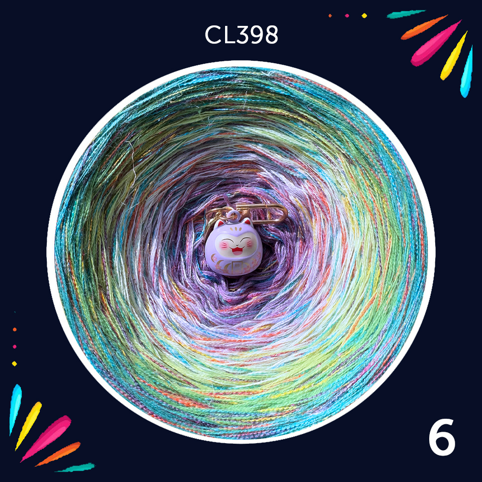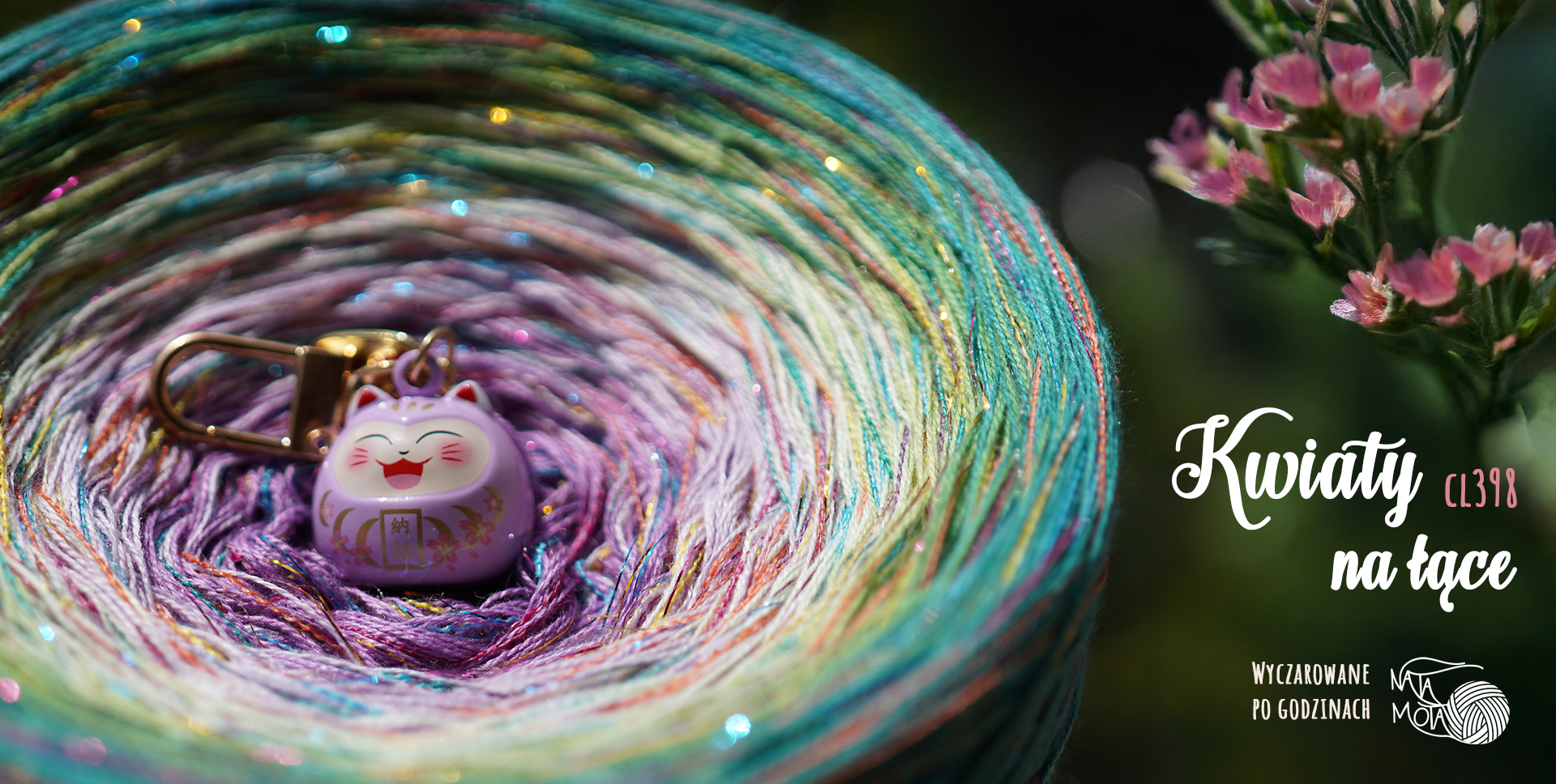 Motek ombre – 3 nitki bawełna 50% / akryl 50% (6 kolorów) + włoska tęczowa nitka lniano-akrylowa + lurex tęczowy