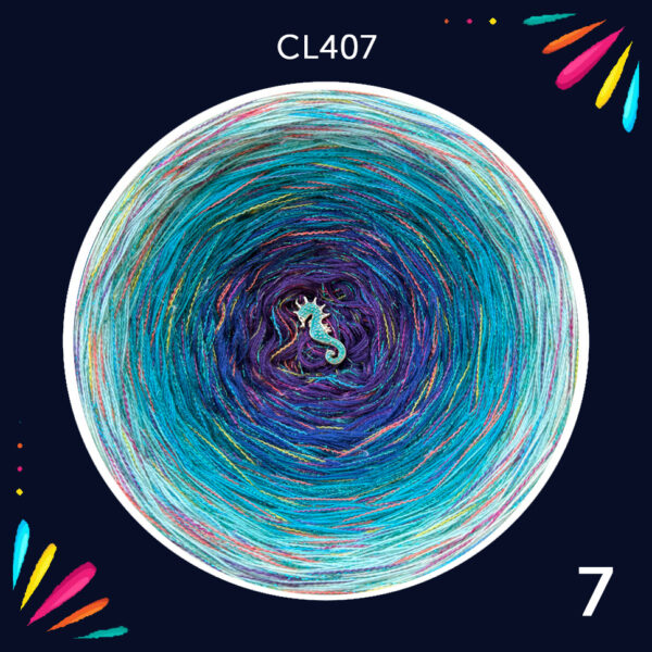 Motek ombre – 3 nitki bawełna 50% / akryl 50% + włoska tęczowa nić lniano-akrylowa + lurex lagunowy na recyklingowanej bawełnie