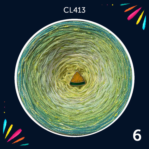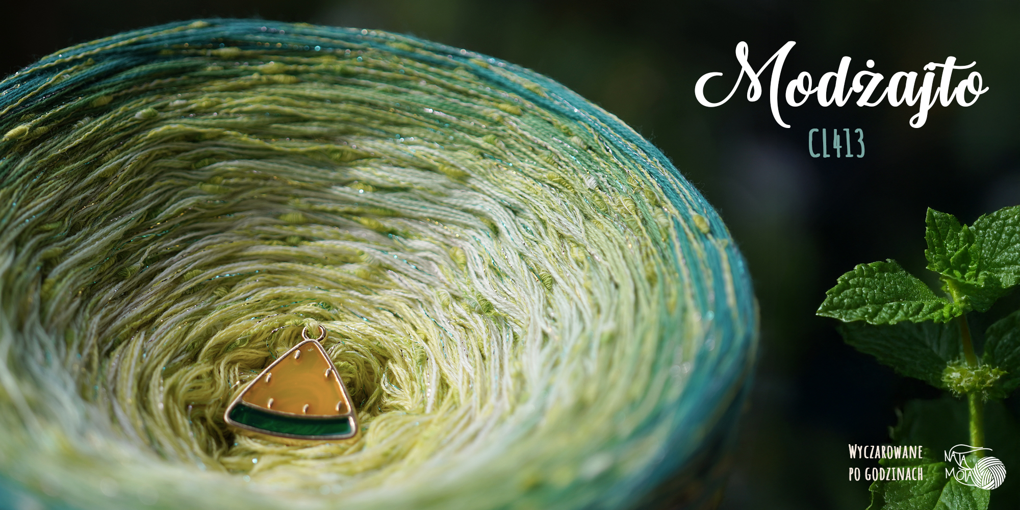 Motek ombre – 3 nitki bawełna 50% / akryl 50%, 6 kolorów: cytryna, mochi, gruszka, wasabi, kolendra, okinawa + lurex sparkling na bawełnie regenerowanej + włoski limonkowy nopek bawełniany 100%.