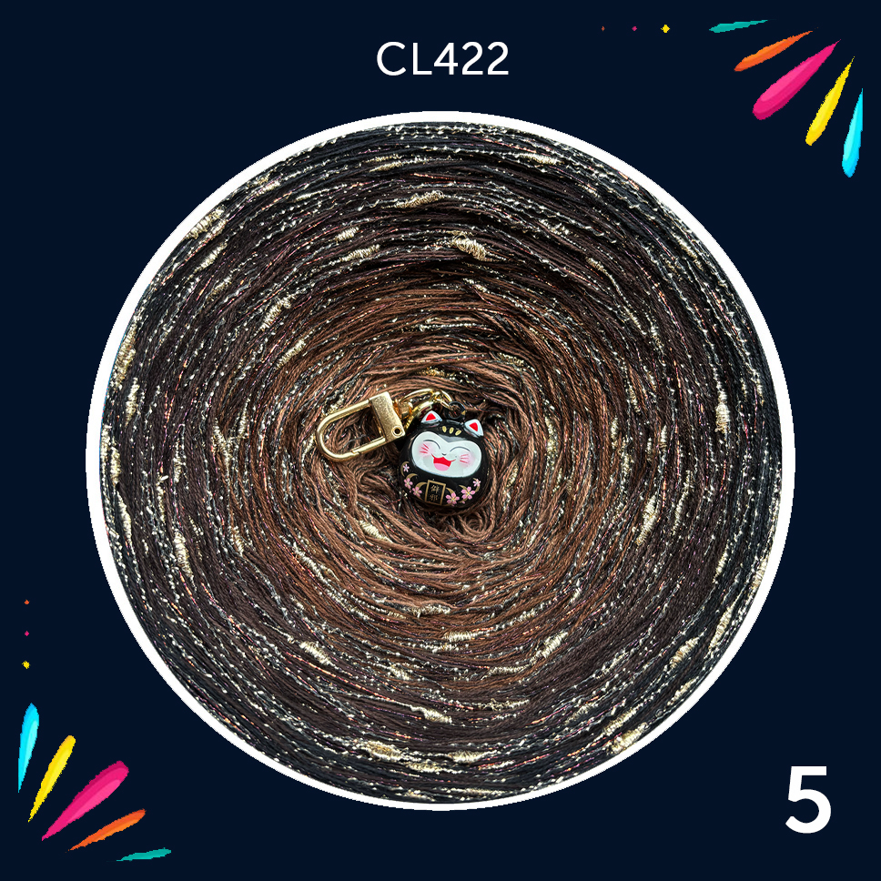 Motek ombre – 3 nitki bawełna 50% / akryl 50% +nopek włoski metalizowany złoty na czarnej wiskozie + lurex miedziany na czarnej wiskozie