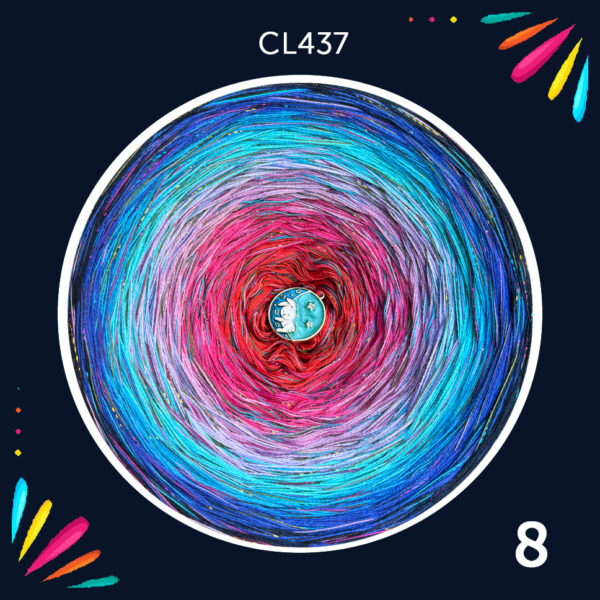 Motek ombre b/a 3 nitki, kolory od wewnątrz: poziomka, fuksja, ametyst, magia, malediwy, zatoka tajlandzka, lapis, średni granat + bawełna 100% Zmierzch + lurex tęcza noir