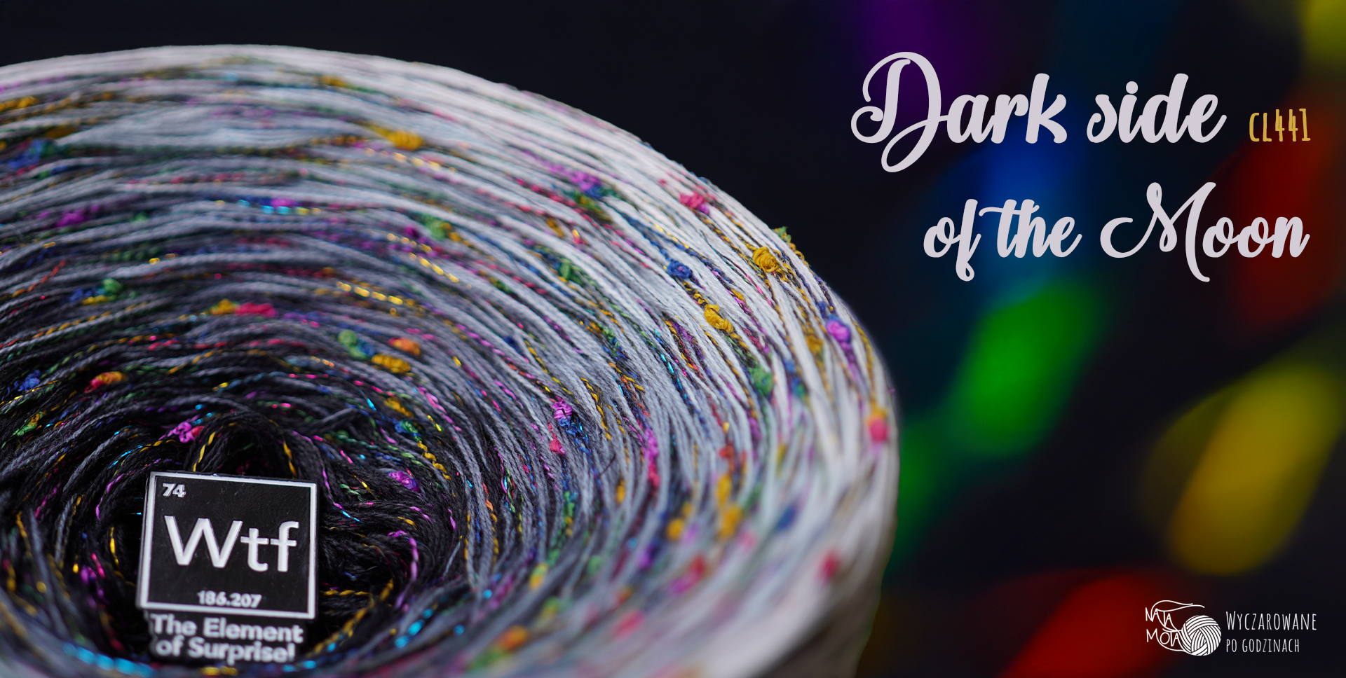 Motek ombre – 3 nitki bawełna 50% / akryl 50% + nopek ciemna tęcza + lurex tęcza noir