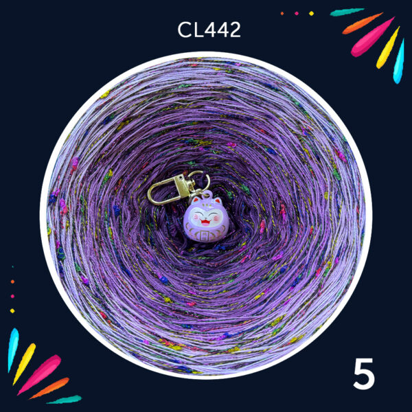 Motek ombre – 3 nitki bawełna 50% / akryl 50% + nopek ciemna tęcza + lurex fioletowy na regenerowanej bawełnie czarnej