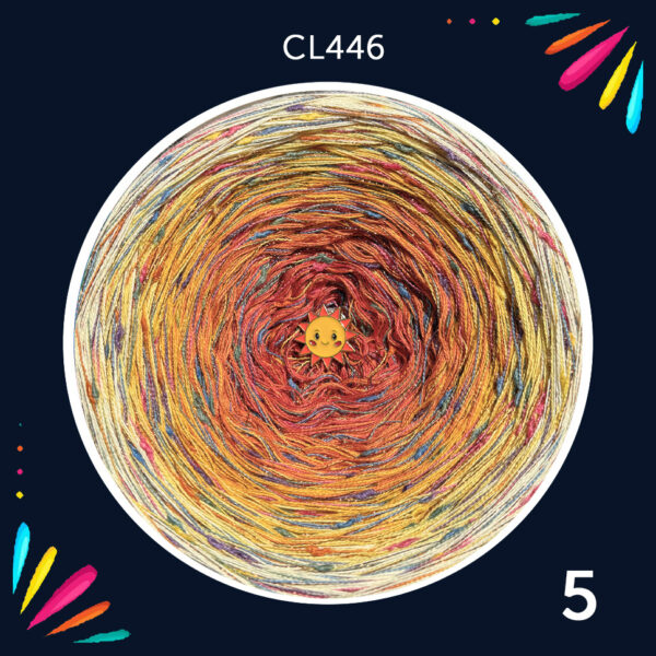Motek ombre – 3 nitki bawełna 50% / akryl 50% + nopek jasna tęcza + lurex jesienny na regenerowanej bawełnie czarnej