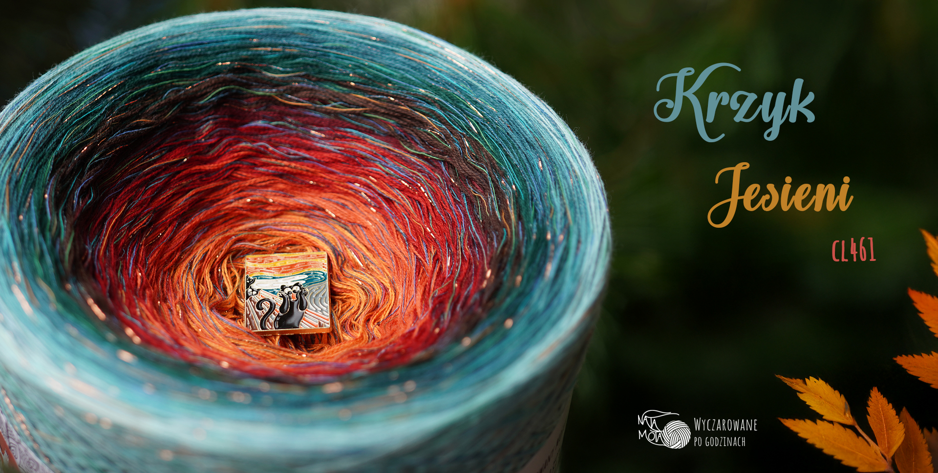 9 kolorow bawełna/akryl, 3 nitki (strelicja, jarzębina, goji, dzikie wino, kawa, dżungla, głębia oceanu, średni petrol, jadeit) +2 dodatkowe (lurex miedziany na petrolowej wiskozie, włoska bawełna cieniowana jesienna)