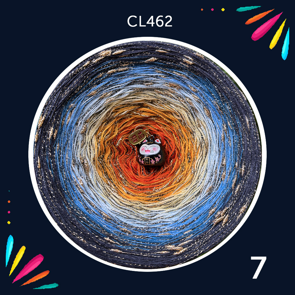 Motek ombre – 3 nitki bawełna 50% / akryl 50% + luksusowy włoski nopek złoty metalizowany na czarnej nitce