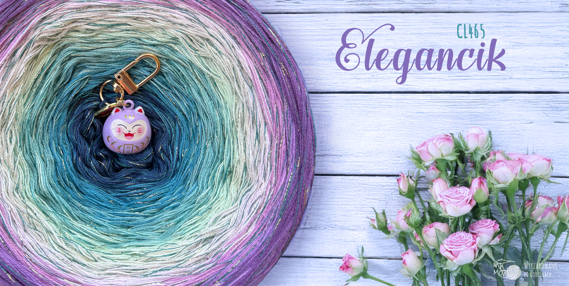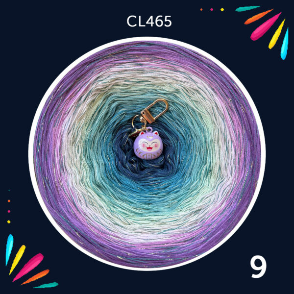 9 kolorow bawełna/akryl, 3 nitki (garda, jasny petrol, jadeit, trawa cytrynowa, mochi, kamelia, ametyst, jasna orchidea, jasna figa) +wiskoza szmaragdowa z szampańskim lurexem