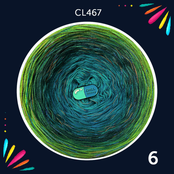 6 kolorów bawełna/akryl, 3 nitki (laguna, ciemna laguna, mroczna laguna, dżungla, okra, matcha) +2 dodatkowe (lurex granatowy na czarnej wiskozie, 100% bawełna włoska cieniowana – tropikalna)