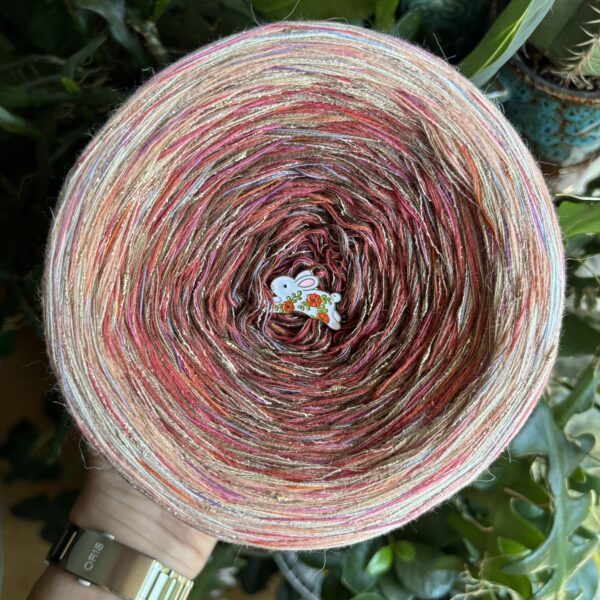 1300m, 3 nitki b/a kolory 5 kolorów + bawełna 100% zachód słońca + nopek włoski metalizowany szampański + zmienna alpaczka