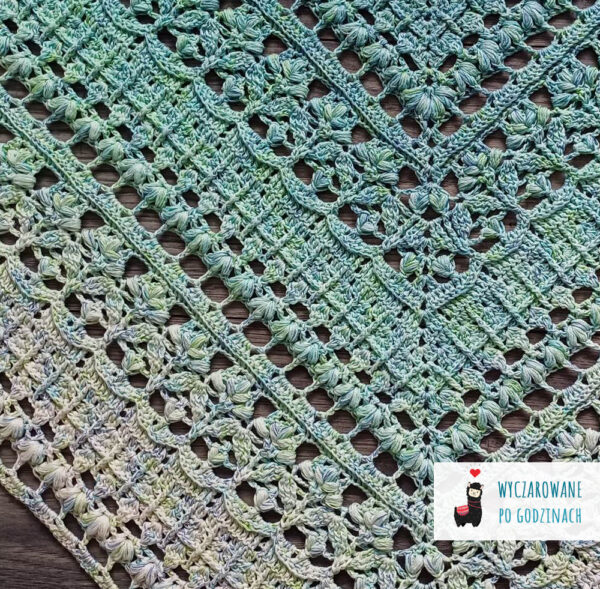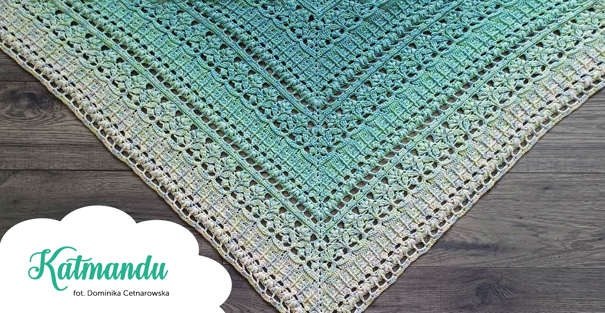 Wzór na trójkątną chustę Katmandu autorstwa Wyczarowane po godzinach i Szydełkowe Tworki zawiera: