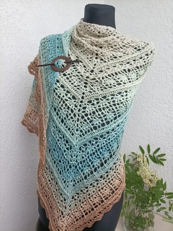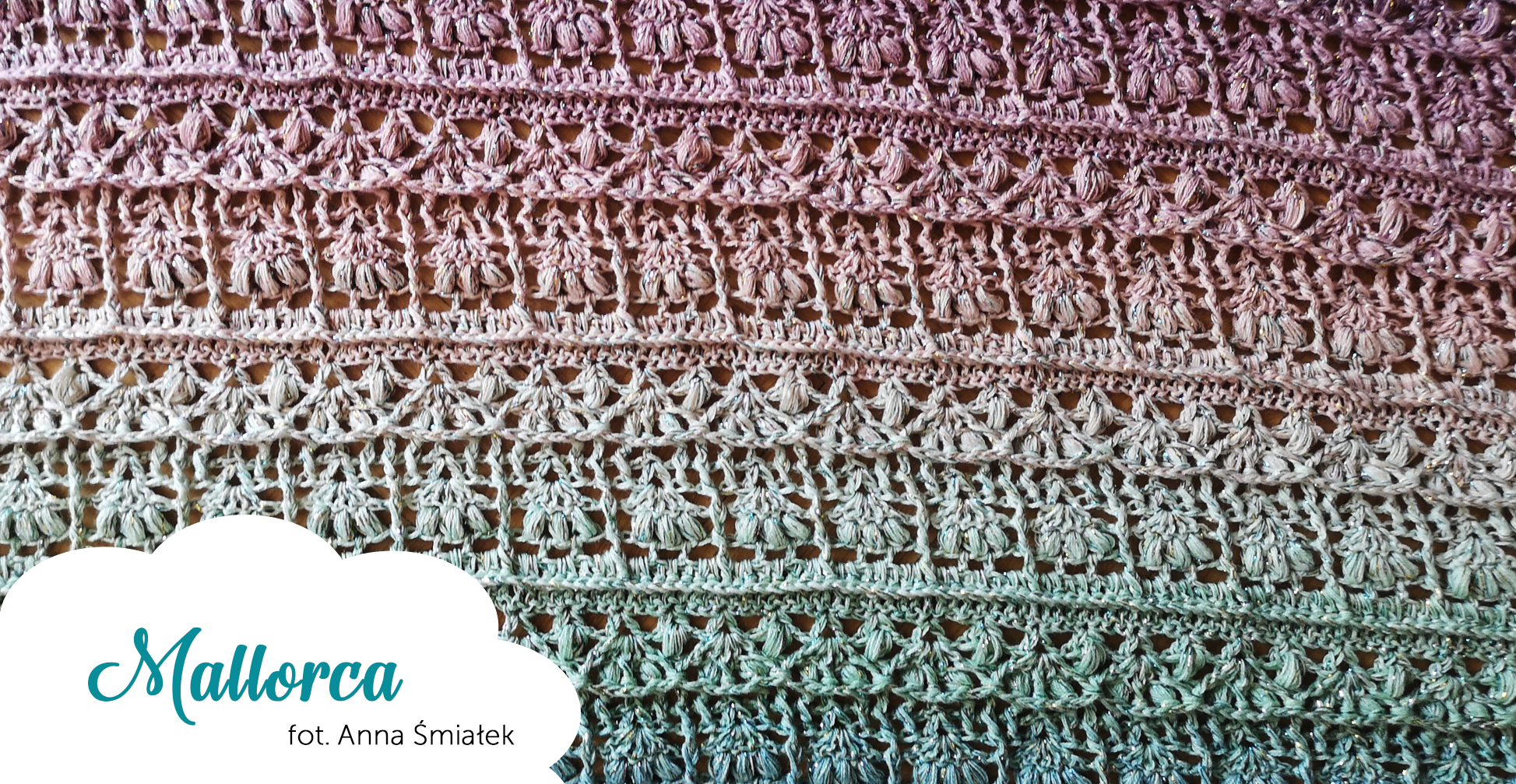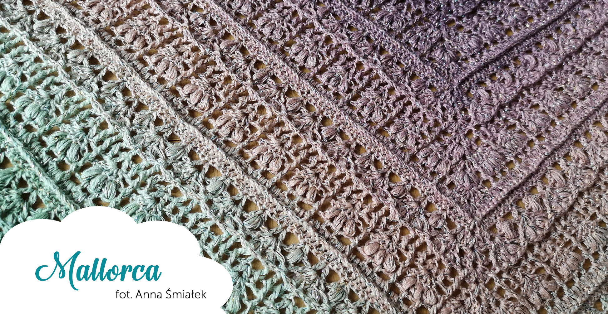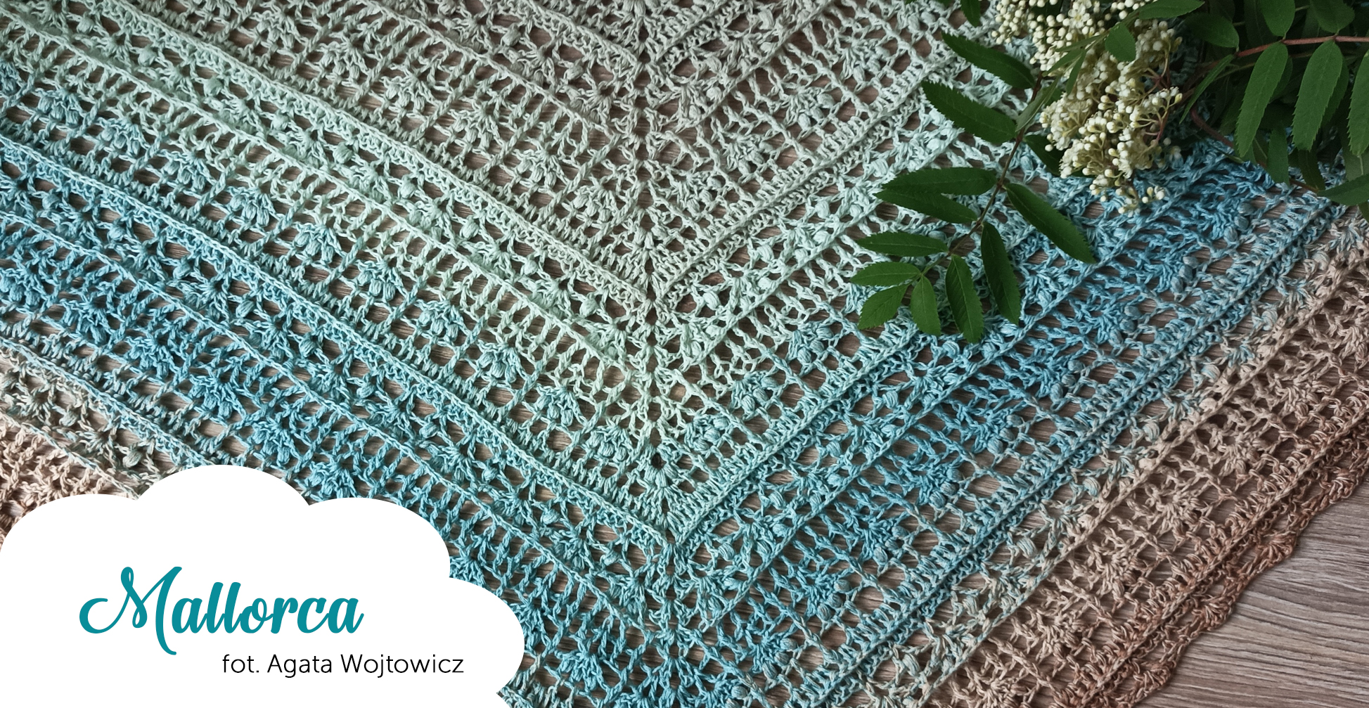 Wzór na trójkątną chustę Mallorca autorstwa Wyczarowane po godzinach i Szydełkowe Tworki zawiera:
