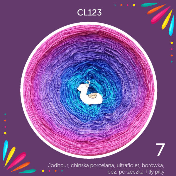 Motek ombre b/a 3 nitki, kolory od wewnątrz: Jodhpur, chińska porcelana, ultrafiolet, borówka, bez, porzeczka, lilly pilly