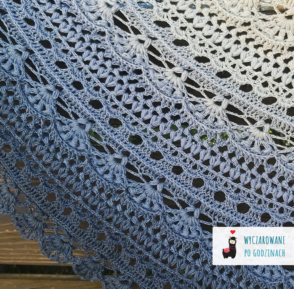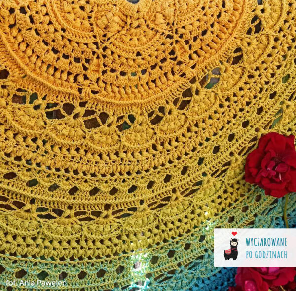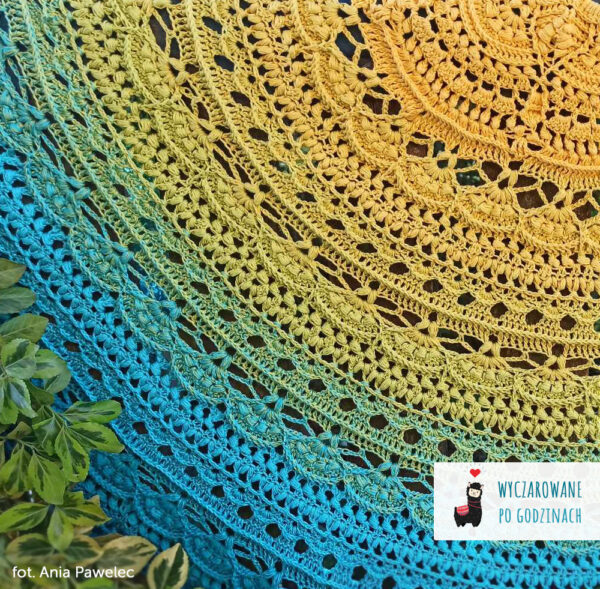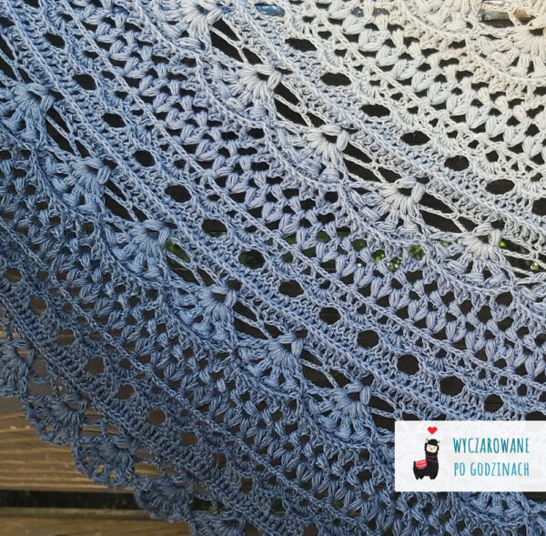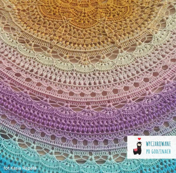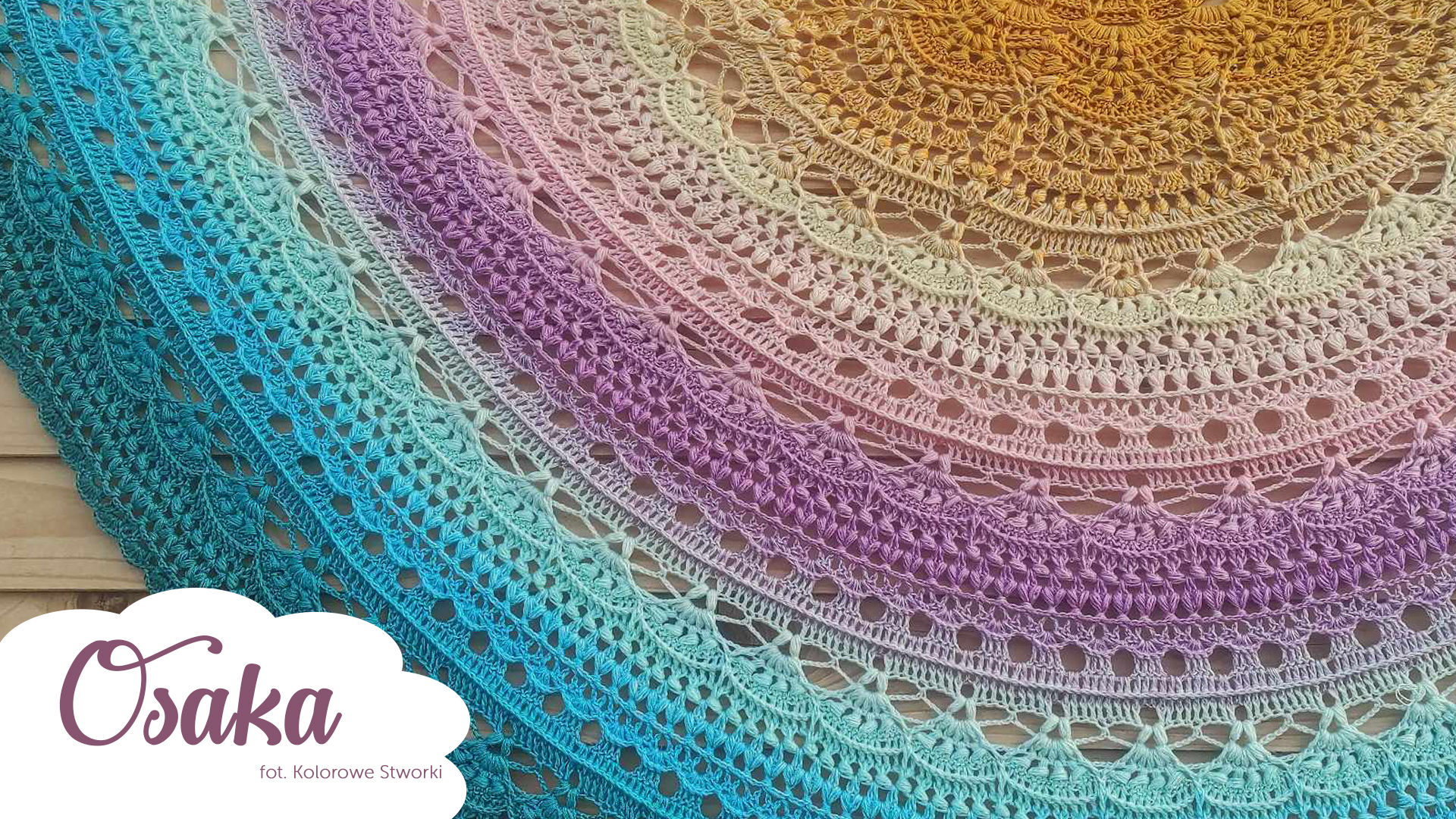 Wzór na powtarzalną chustę półokrągłą Osaka autorstwa Wyczarowane po godzinach i Szydełkowe Tworki zawiera: