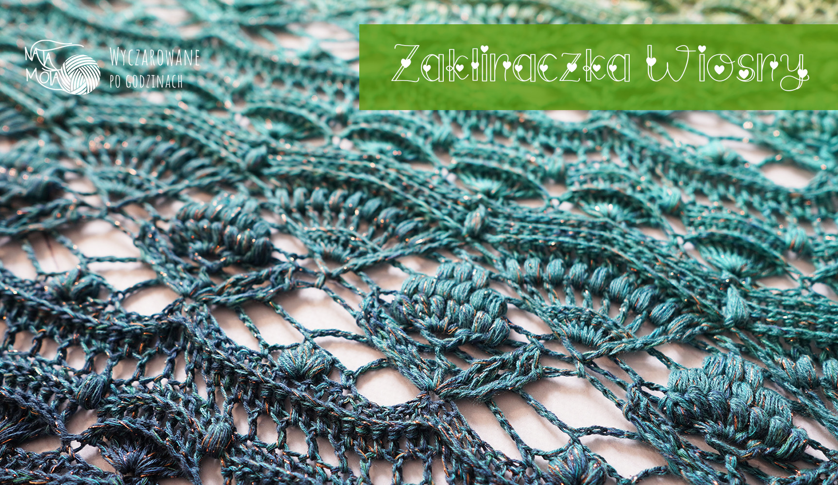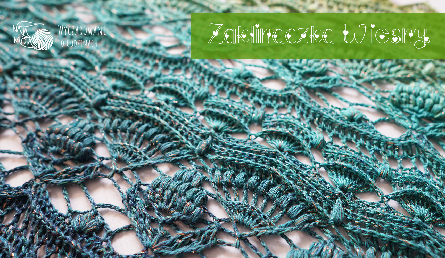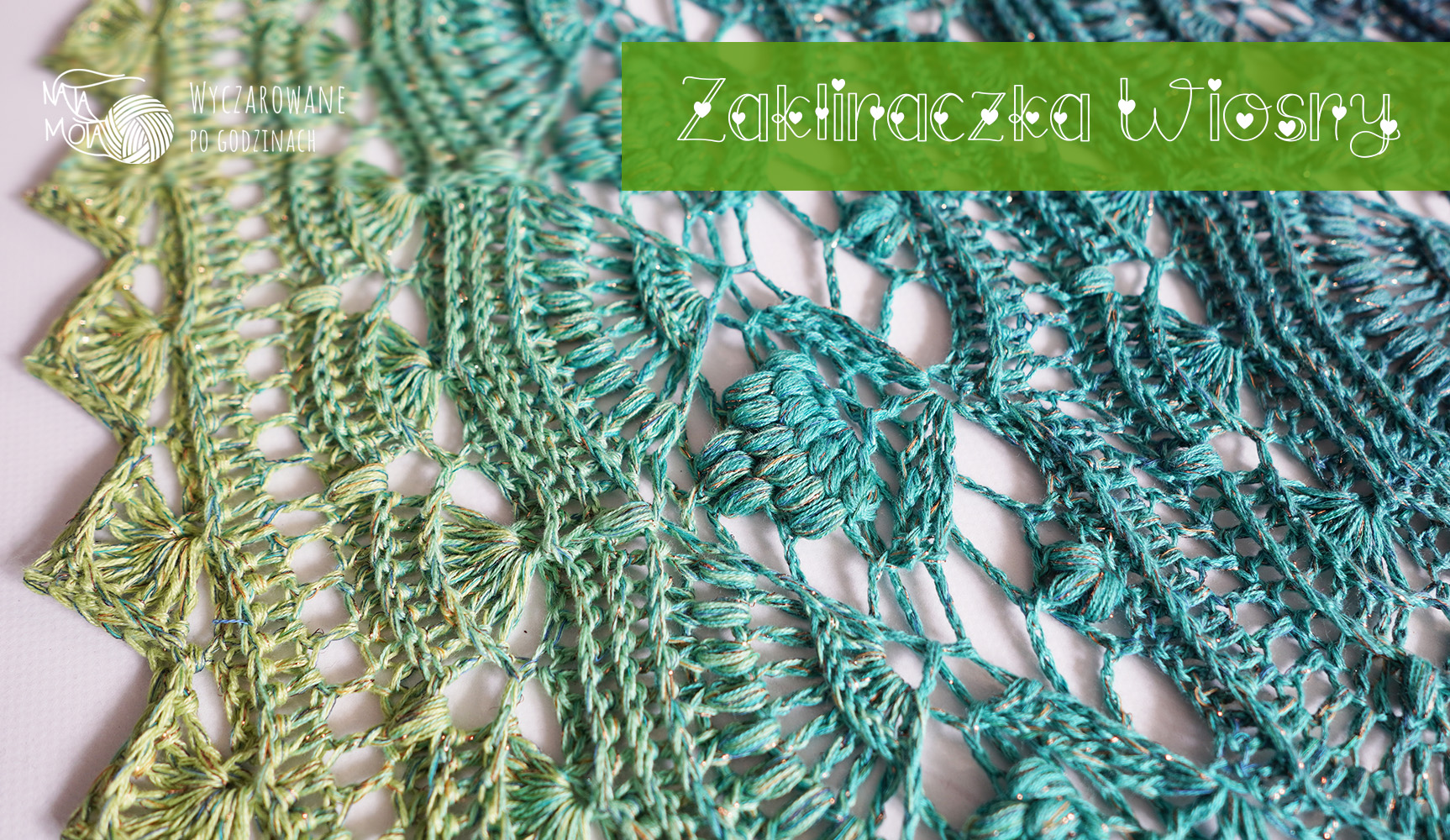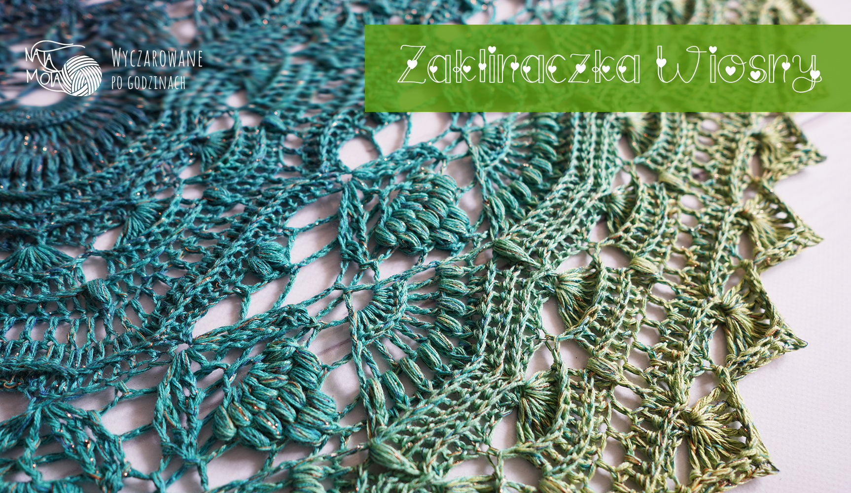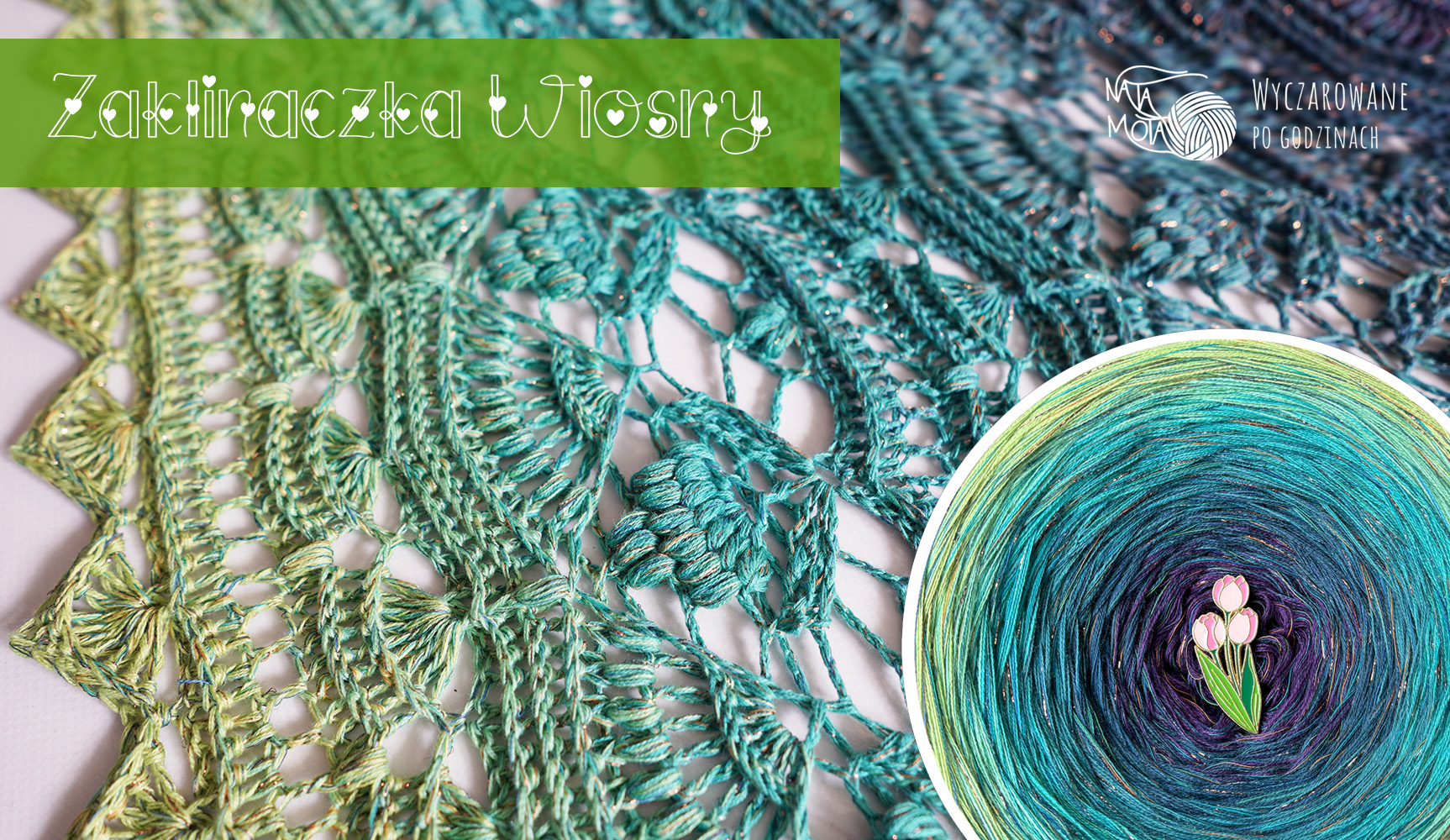 Wzór na chustę trójkątną powtarzalną Zaklinaczka Wiosny autorstwa NataMota i Wyczarowane po godzinach zawiera: