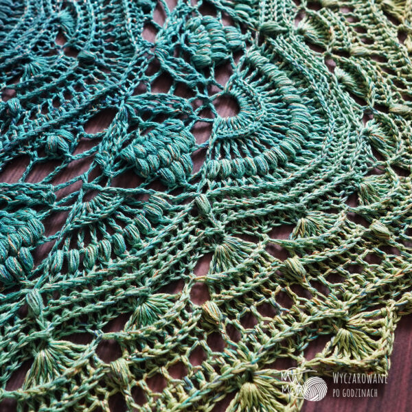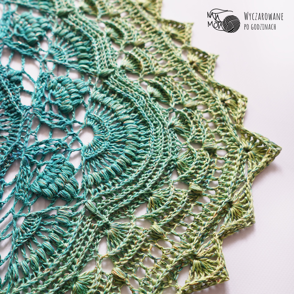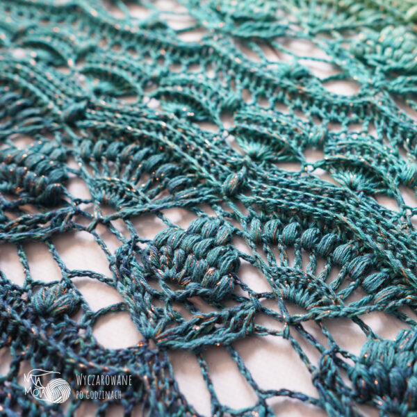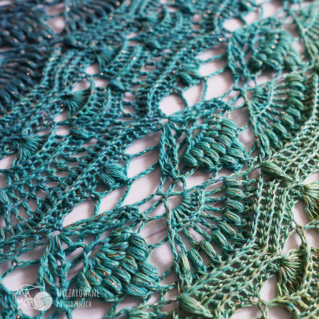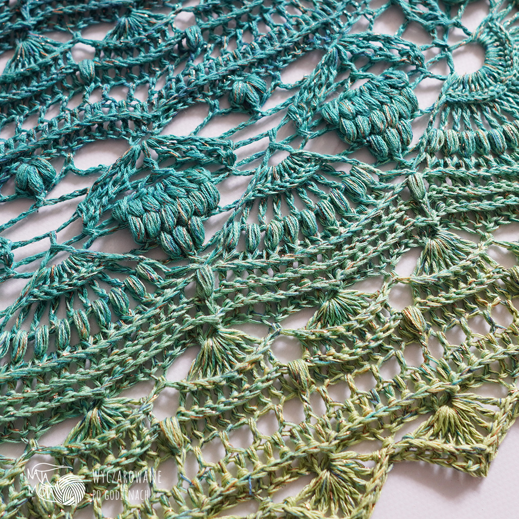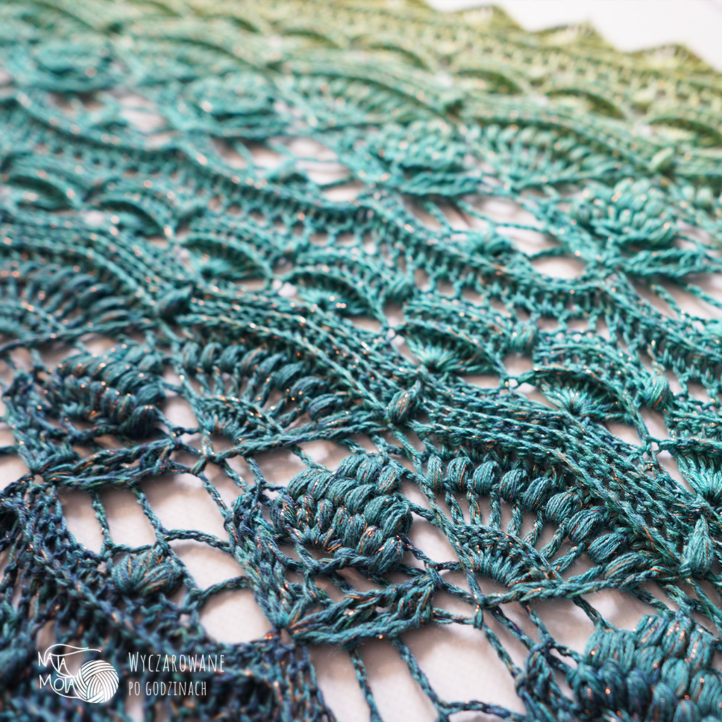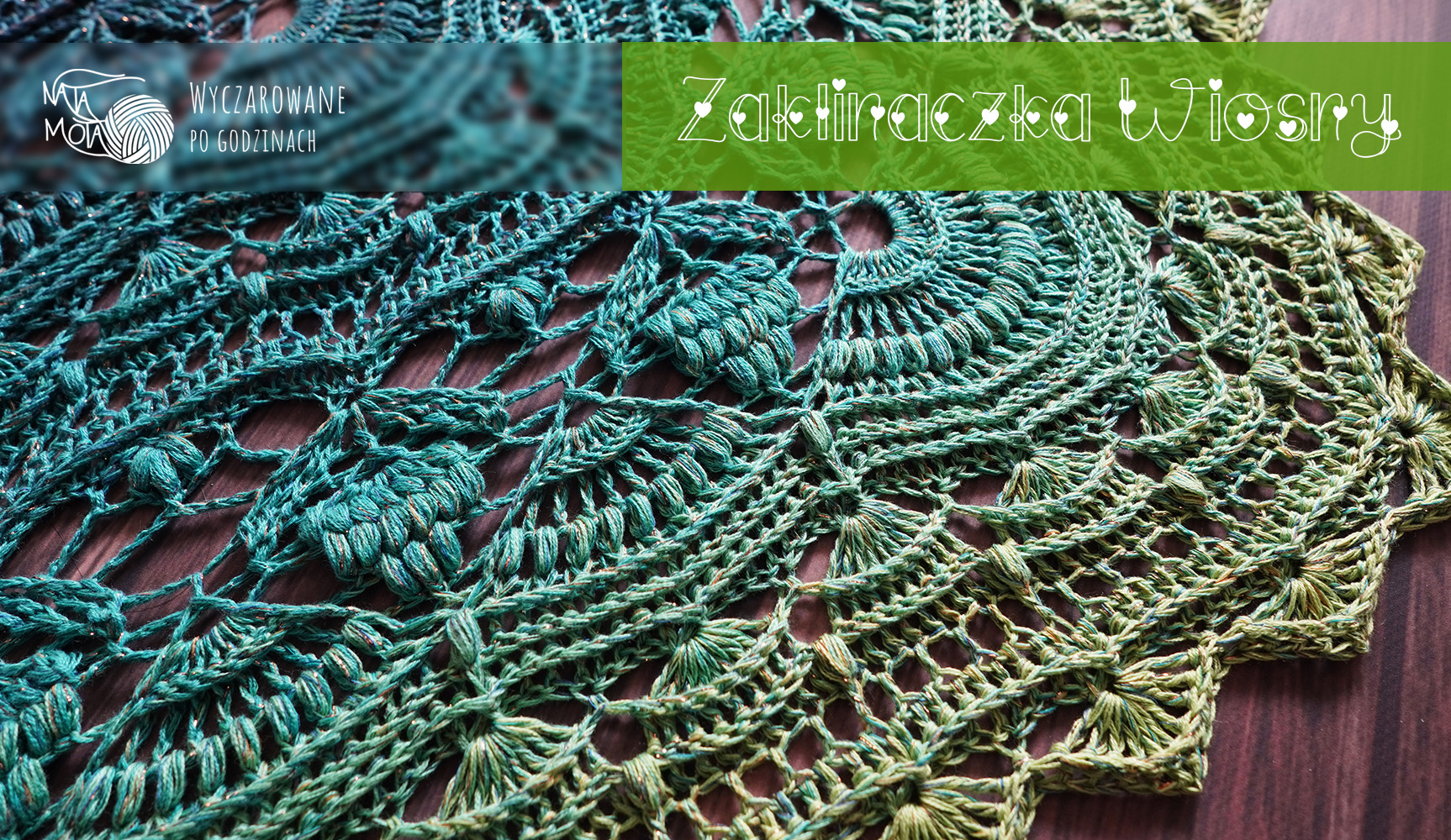 Wzór na chustę trójkątną powtarzalną Zaklinaczka Wiosny autorstwa NataMota i Wyczarowane po godzinach zawiera: